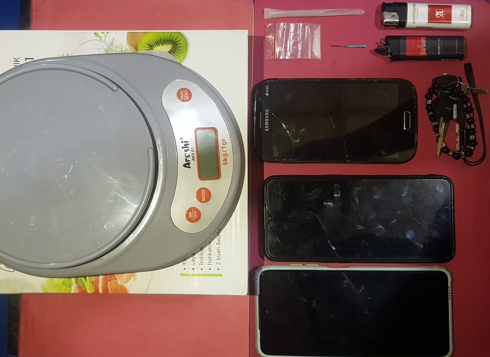 Bersama pelaku, polisi berhasil mengamankan barag bukti (BB) berupa Satu Paket Narkoba yang diduga jenis Sabu yang dibungkus dengan plastik warna bening. Kemudian Satu Unit Sepeda Motor Mio Warna Putih No Pol.BA 6896 PL dan dua buah handphone Android merk Poco warna hitam dan handphone Android merk OPPO A31 warna putih.