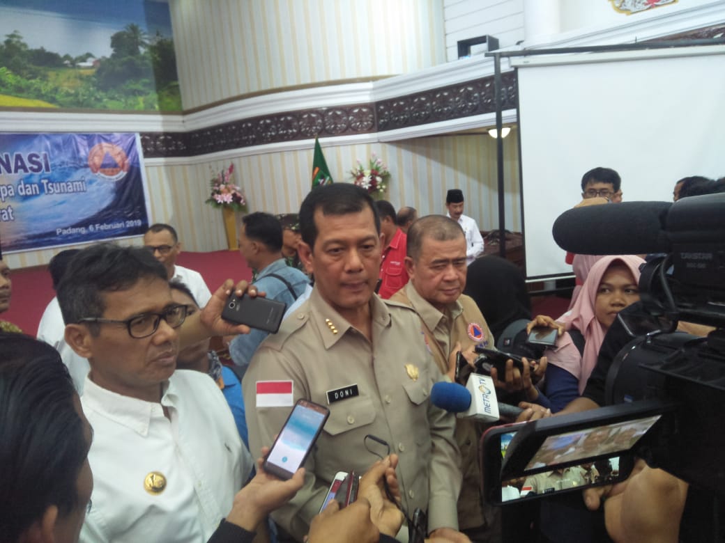 Foto: Kepala BNPB Letjen Doni Monardo (tengah), didampingi Gubenur Sumbar Irwan Prayitno dan Wagub Nasrul Abit, Rabu (6/2/2019). (Putri Caprita)