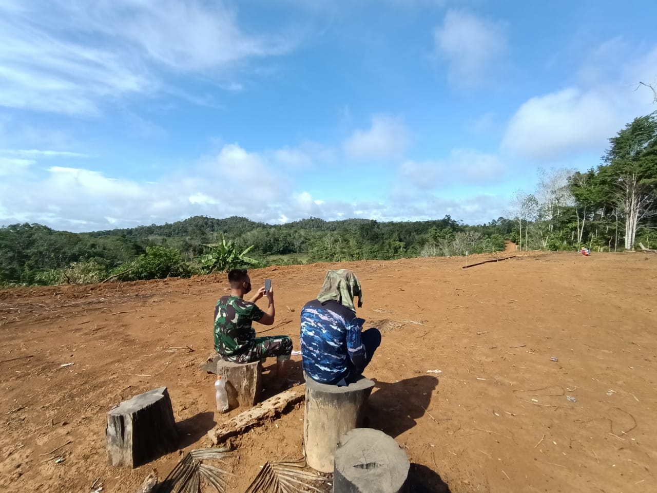 Lantaran susah sinyal, maka Anggota Satgas TMMD 110/Kodim 1201 Mempawah – Landak Prada Herja harus pergi di atas bukit yang ada di Desa Tolok agar mendapatkan sinyal.
