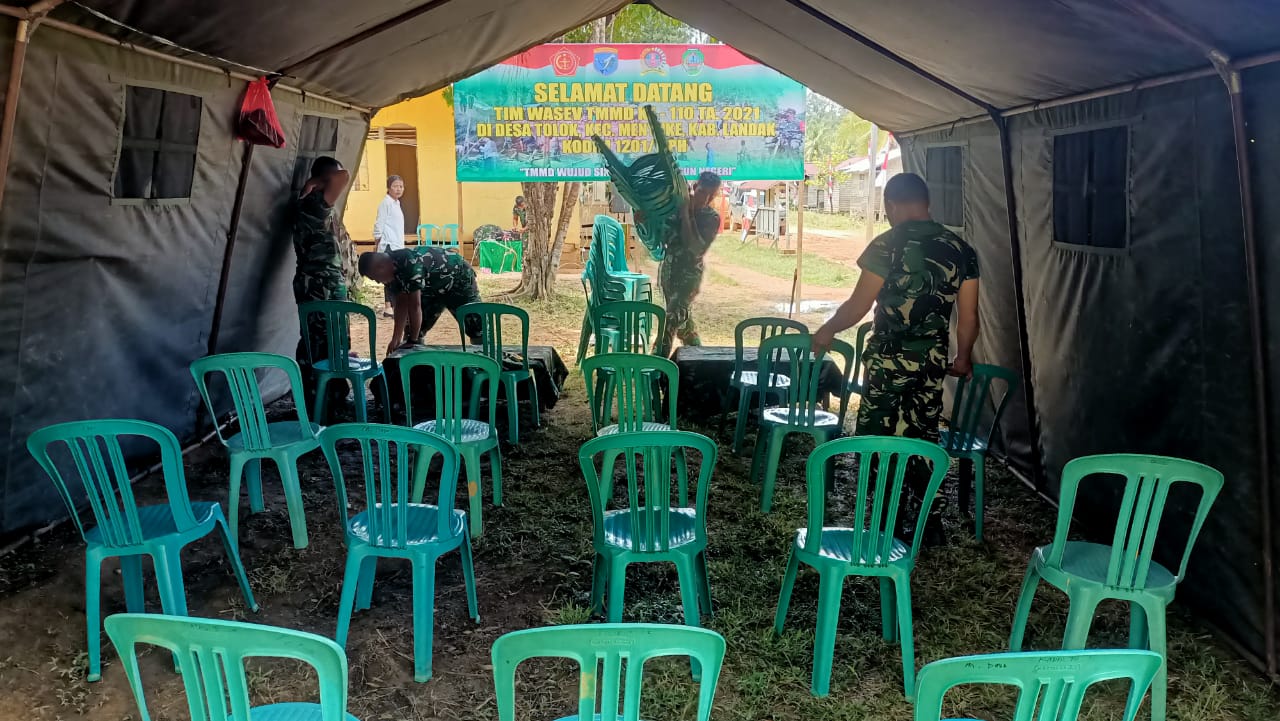 Landak – Anggota Satgas TMMD 110/Kodim 1201 Mempawah – Landak, sedang membantu warga mengangkat semen, Dusun Palah, Desa Tolok, Kecamatan Menyuke, Kabupaten Landak.