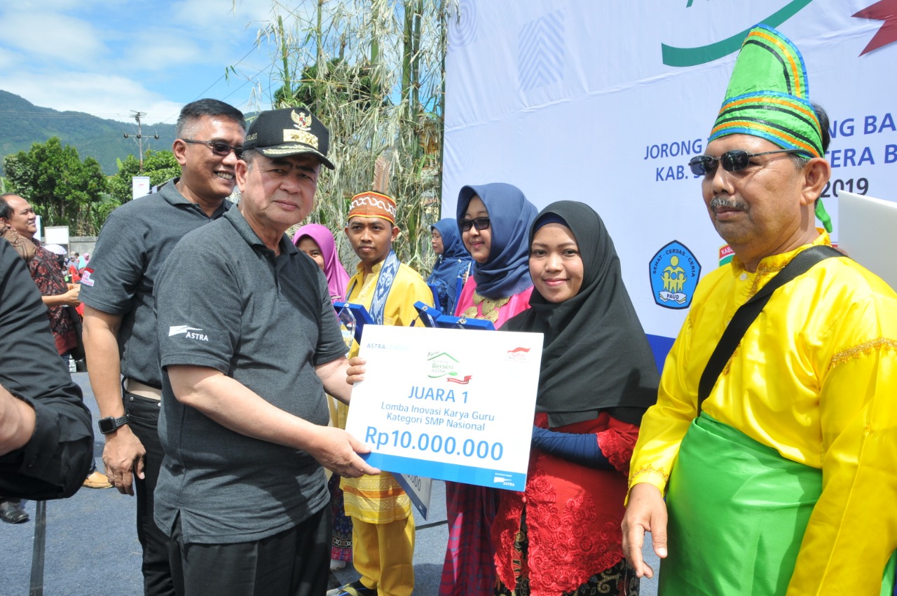 “Kami juga akan menyerahkan secara simbolis beasiswa Aksara untuk 40 mahasiswa terpilih Sumbar senilai 120 juta serta beasiswa lestari Astra yang telah disalurkan selama tiga tahun kepada anak KBA Jorong Tabek 140 juta. Selain itu juga diserahkan hadiah lomba inovasi karya guru tingkat nasional kategori Paud, rumah pintar, SD, SMP, SMA dan SMK Rp.200 juta,” ungkapnya.
