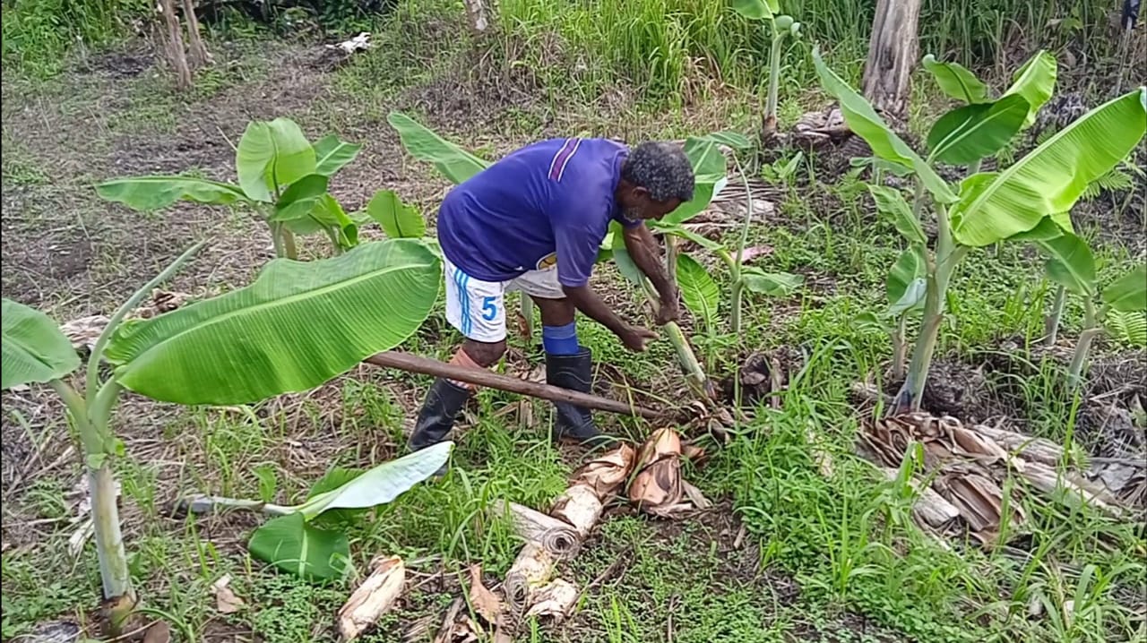 Sarmi, Papua – Niklas Niniwen, Salah satu warga lokasi sasaran TMMD 111 Kampung Dorba Distrik Pantai Timur Kab. Sarmi, Papua, tampak melaksanakan kegiatan sehari-harinya ditengah program TMMD yang berlangsung di kampungnya.