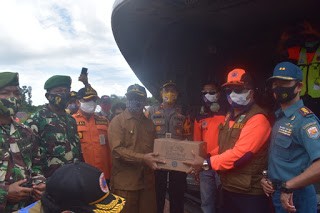 Mentawai – Kepala Bidang Kedaruratan dan Logistik Badan Penanggulangan Bencana Daerah (BPBD) Provinsi Sumatera Barat Rumainur menyerahkan secara langsung bantuan kepada pemkab Mentawai uyang diterima wakil bupati Kepulauan Mentawai Kortanius Sabeleake di lapangan bola Km.8 Desa Sipora Jaya, Kecamatan Sipora utara pada Senin, 28 September 2020.