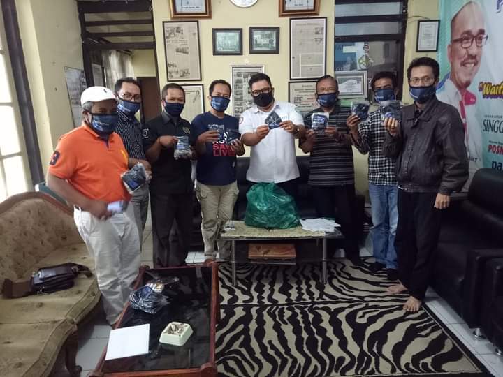 Ini merupakan bentuk sumbangan PWI dan BPJS dalam memutus mata rantai Covid-19, masker  tersebut dibagikan kepada tukang ojek, sopir angkot, dan wartawan.