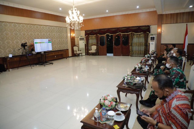 Panglima TNI yang diwakili oleh ASOPS Panglima TNI menyampaikan tentang penekanan penanganan Covid-19 yaitu perlu adanya perbaikan manajemen PPKM Mikro, meningkatkan kepatuhan melaksanakan 3 M, meningkatkan pelaksanaan 3 T, meningkatkan Koord dan Kalaborasi Stakeholder terkait bersama TNI-Polri, Akselerasi Vaksinasi dan Penyiapan Fasilitas Isolasi/Karantina.