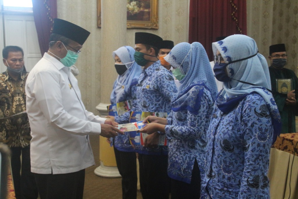Bupati Solok Gusmal menyampaikan ucapan selamat sekaligus menitipkan pesan kepada 54 PNS yang baru saja diberikan SK agar dapat melaksanakan tugas dan fungsi dengan sebaik-baiknya.