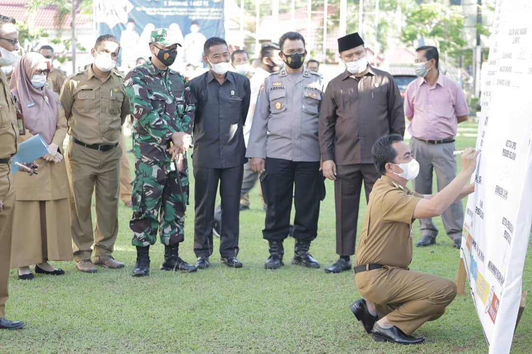 Deklarasi Pilwana Damai dilaksanakan secara simbolis oleh perwakilan calon wali nagari pada saat apel pagi ASN lingkup Pemkab Pesisir Selatan pada Senin, 7 Juni 2021 Pagi.