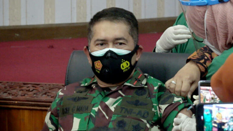 Padang – Komandan Korem (Danrem) 032 Wirabraja, Brigjen TNI Arief Gajah Mada menjadi orang pertama disuntik vaksin Sinovac di Sumatra Barat (Sumbar).