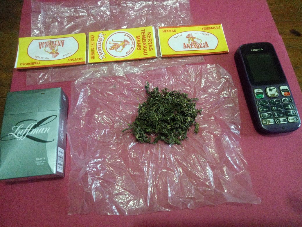 Saat dilakukan penangkapan terhadap pria tersebut, petugas berhasil menemukan dan menyita barang bukti berupa 1 (satu) Paket yang diduga narkotika jenis ganja yang dibungkus dengan plastik warna bening kemudian dimasukan kedalam kotak rokok merk Luffman warna abu-abu.