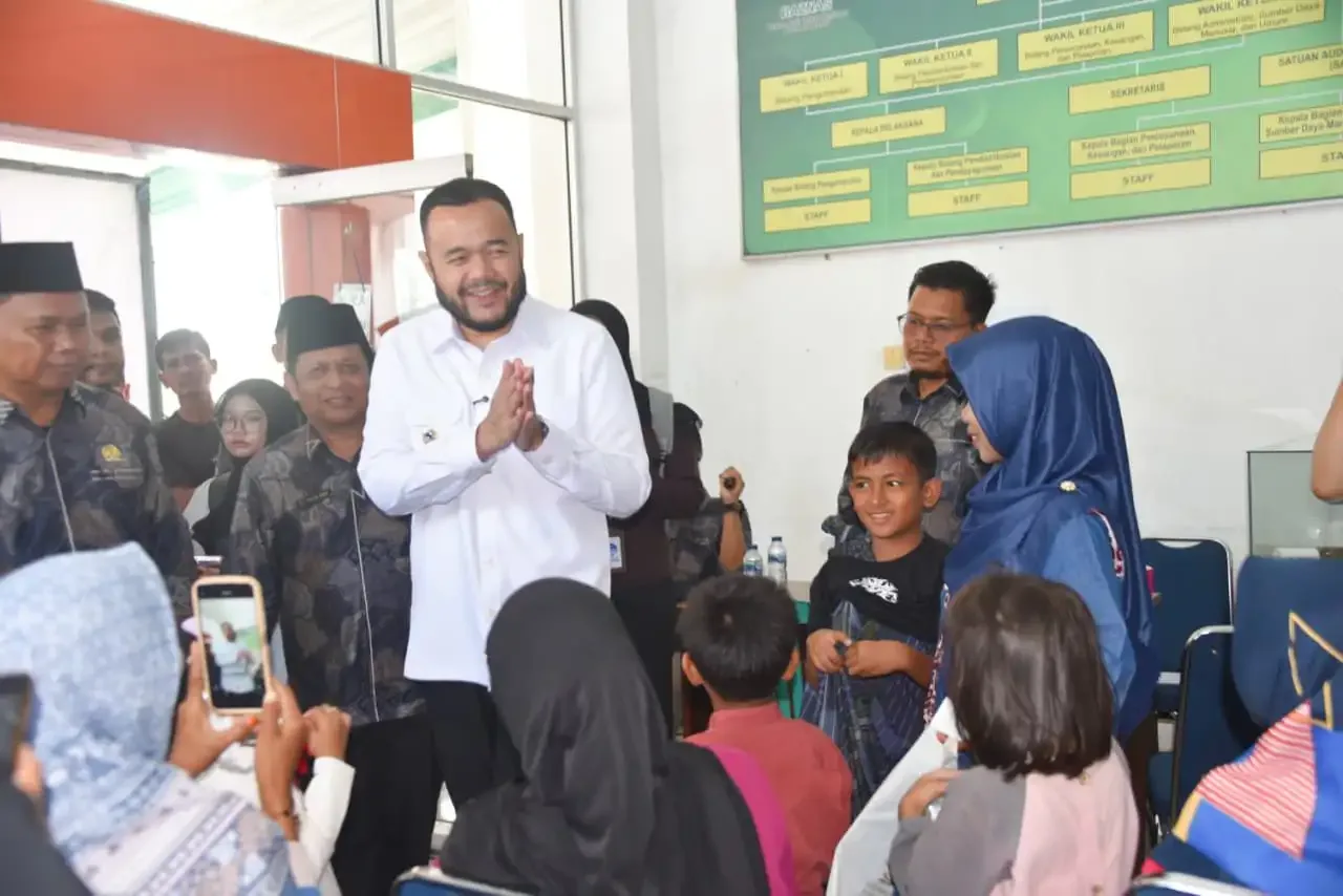 Wali Kota Padang, Fadly Amran, meninjau langsung pelaksanaan khitan gratis di Aula Kantor BAZNAS Kota Padang pada Senin (22/12/2025).