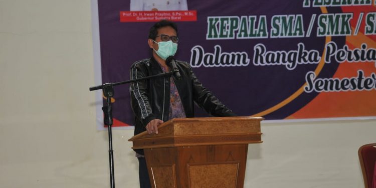 Bikittinggi – Dalam rangka persiapan pembelajaran tatap muka semester genap tahun 2021, Dinas Pendidikan (Disdik) Sumatera Barat (Sumbar) mengadakan Rapat Koordinasi Kepala SMA/SMK/SLB Negeri se-Sumbar di gedung PGSD Universitas Negeri Padang (UNP) di Belakang Balok, Bukittinggi pada Kamis, 24 Desember 2020.