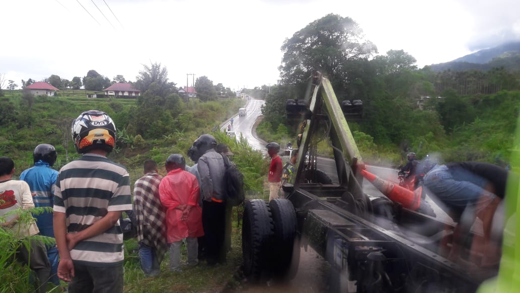 Anggota Sat Lantas Polres Arosuka yang mendapat informasi dari masyarakat yang berada di sekitar lokasi kejadian, langsung turun ke lokasi guna membantu mengevakuasi para penumpang mobil dan membawanya ke RSUD Arosuka.