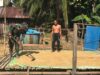 Landak – Masa pendemi Covid-19, tidak menyurutkan personil yang tergabung dalam Satgas TMMD 110 Kodim 1201/ Mempawah – Landak, di Desa Tolok, Kecamatan Menyuke, Kabupaten Landak, terus memberi contoh dan imbauan tentang protokol kesehatan (Prokes).