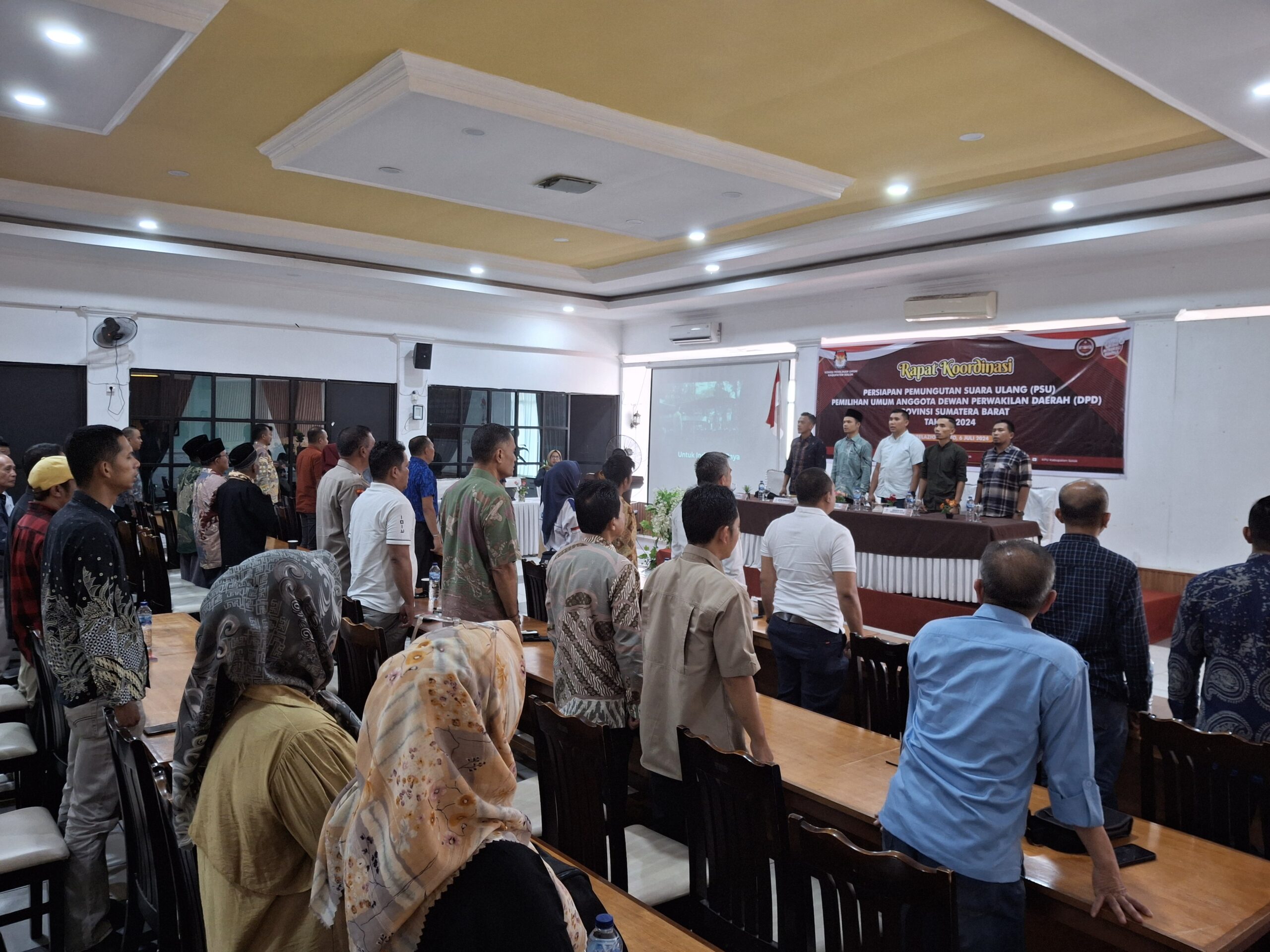 Arosuka Solok – Bertempat di Relazion Resto Kota Solok, Sabtu 6/7/2024, Komisi Pemilihan Umum Kabupaten Solok gelar rapat koordinasi persiapan pemungutan suara ulan (PSU), pemilihan umum anggota dewan perwakilan daerah (DPD) provinsi Sumatera Barat Tahun 2024.