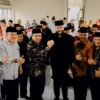 Ketua KPU Kabupaten Solok Hasbullah Alqomar didampingi Komisioner Defil dan Novialdi Putra juga Despa Wandri, hadir juga Ketua Bawaslu Kabupaten Solok Titony Tanjung, pimpinan Forkopimda, pimpinan partai politik se Kabupaten Solok.