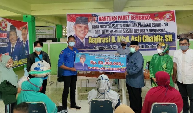Padang – Masyarakat yang terdampak Covid-19 di Lubuk Kilangan, mendapatkan 250 paket sembako dari Kementerian Sosial, yang diserahkan Komisi VII DPR RI, H. Muhammad Asli Chaidir, di Masjid Ihsan Muhammadiyah, Bandar Buat. Minggu 13 Desember 2020.