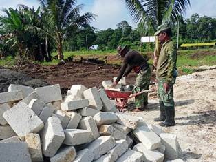 Semua unsur tampak bahu membahu melaksanakan pembangunan Gereja, Balai Kampung, dan rumah Pastori di Kampung Dorba yang menjadi sasaran TMMD, Jumat, (18/6/21).