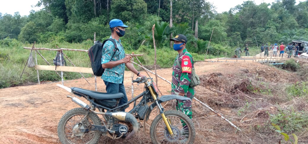 Landak – Anggota satgas TMMD 110/Kodim 1201 Mempawah-Landak berkoordinasi dengan aparatur Desa Tolok, Kecamatan Menyuke, Kabupaten Landak demi lancarnya kegiatan pembangunan di wilayah setempat.