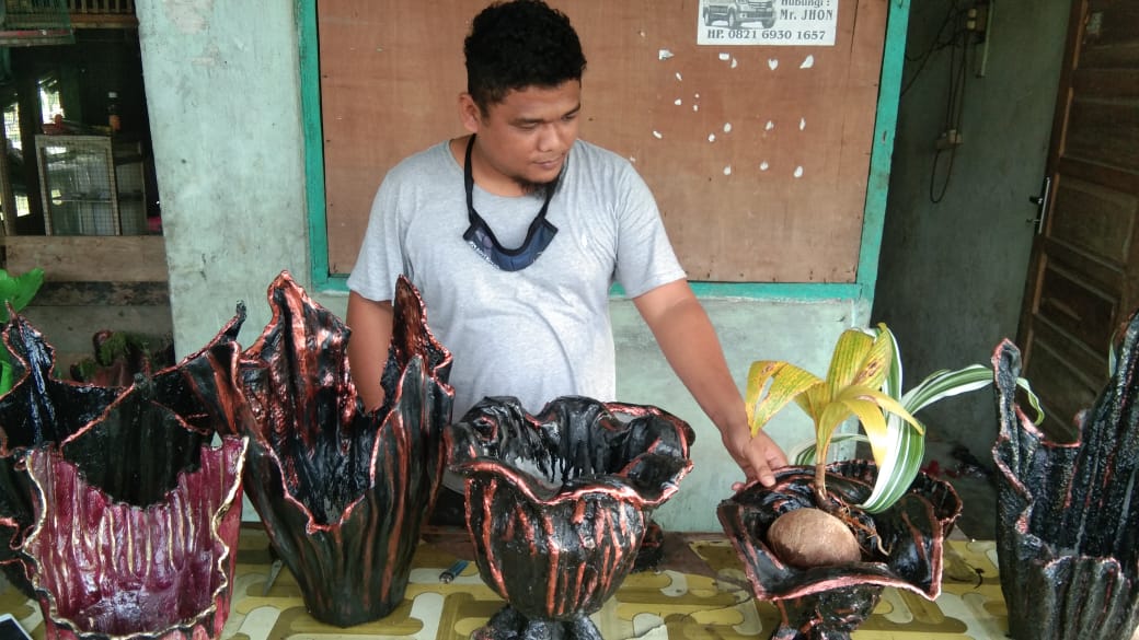 “Pot bunga bisa dipesan sesuai keinginan, yang minat bisa hubungi saya di nomor 081293984307,” sebutnya.