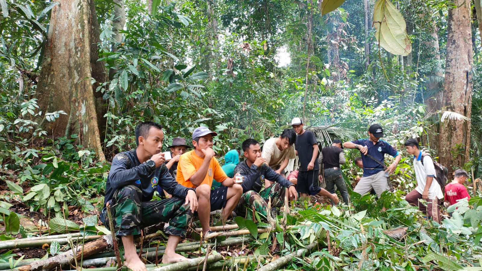 Landak – Anggota Satgas TMMD 110/Kodim 1201 Mempawah – Landak, sedang menikmati kopi sembari bersantai sehabis kegiatan karya bakti memperbaiki bendungan air, Dusun Palah, Desa Tolok, Kecamatan Menyuke, Kabupaten Landak.