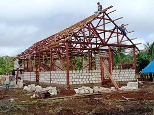 Pembangunan yang dilakukan seperti pembangunan Gereja, Balai Kampung, serta Rumah Pastori ini, dilakukan warga dan Satgas secara gotong royong dan bahu-membahu.