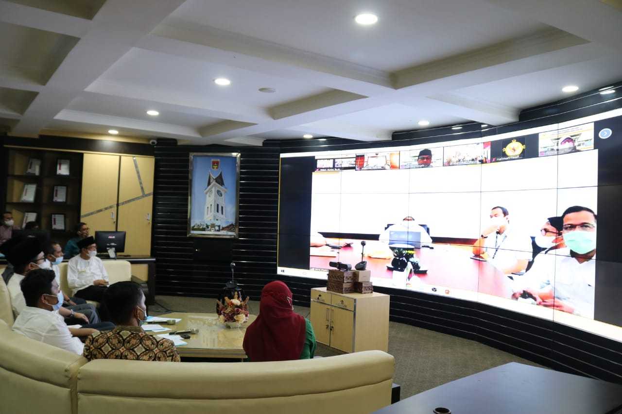 Opini WTP disampaikan oleh Kepala BPK RI Perwakilan Prov. Sumatera Barat, Yusnadewi, secara daring, yang diikuti oleh Wako Erman Safar dari ruangan Bukittinggi Command Center, Balai Kota, Gulai Bancah. Turut mendampingi Wako pada acara tersebut Ketua DPRD, Herman Sofyan, Asisten II Setdako serta Kepala OPD terkait Rabu 5 Mai 2021.
