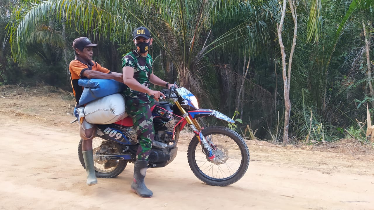 Landak – Membantu aktivitas keseharian warga Desa Tolok, Kecamatan Menyuke, Kabupaten Landak kerap dilakukan Satgas TMMD 110/ Kodim 1201 Mempawah-Landak.