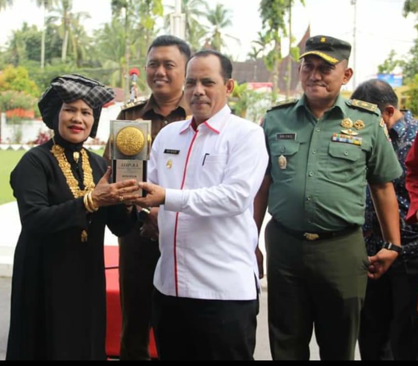 SOLOK, KABARSUMBAR – Di Halaman Balaikota Solok, Piala Adipura disambut dengan haru oleh Wakil Walikota Solok Reinier bersama Kepala Dinas Lingkungan Hidup Kota Solok dan ratusan pasukan kuning “Solok Berdasi”, Selasa (15/01/2019).