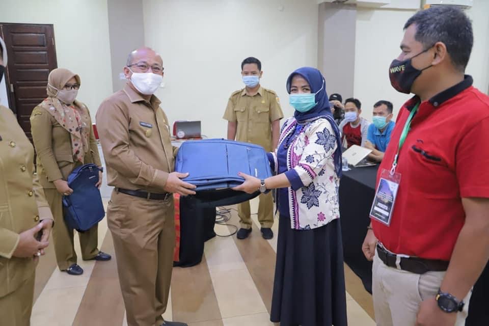 Pertanda dimulainya kegiatan pelatihan Pjs. Wali Kota menyerahkan tanda penggenal dan kelengkapan peserta.