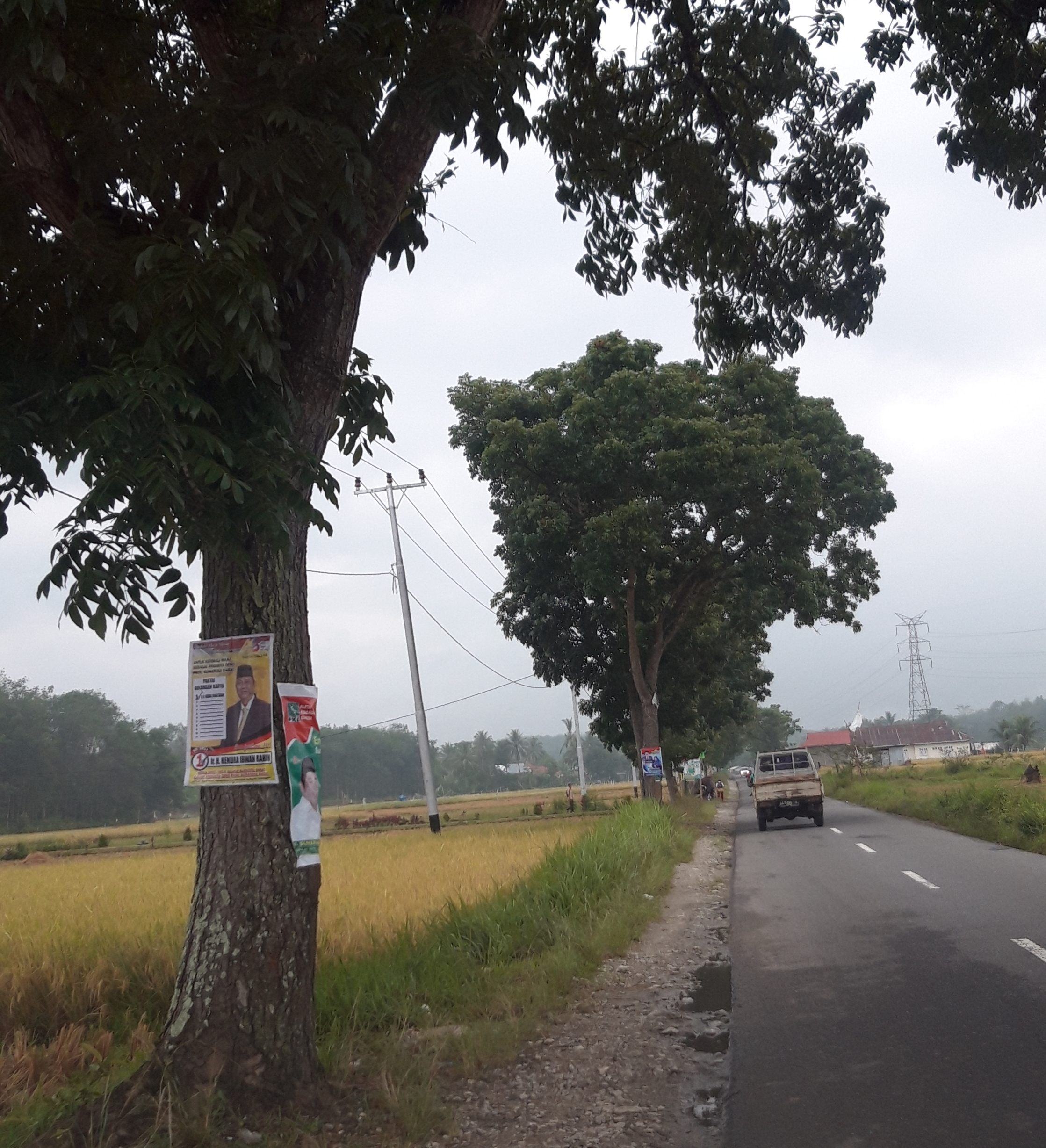 Fhoto : Beberapa poster caleg di Tanah Datar menghiasi pokok pohon di pingir jalan Tanah Datar. (Ddy)