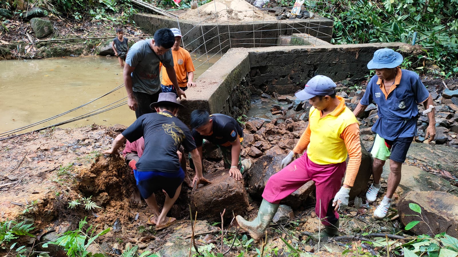 ia mengatakan, karena hal itu kami pun membantu warga memanfaatkan sumber daya alam yang ada disekitaran Dusun Palah dengan merenovasi bendungan air bersih yang rusak.