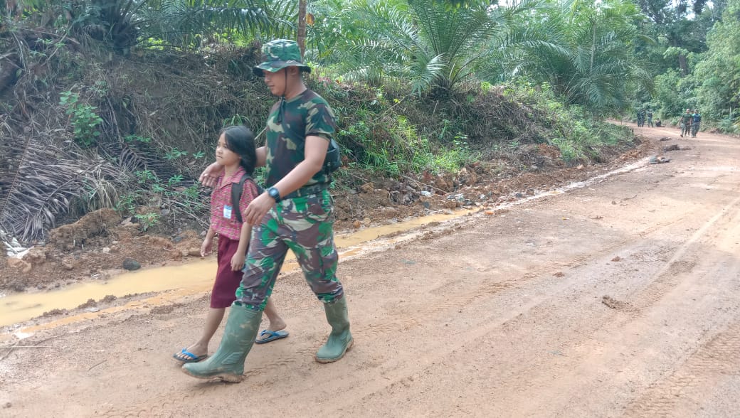 Satgas TMMD 110/ Kodim 1201 Berikan Semangat Pada Pelajar Untuk Tetap Bersekolah