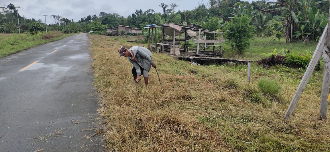 Bersama dengan masyarakat Kp. Dorba, anggota Satgas TMMD Kodim 1712/Sarmi melaksanakan kerja bakti pembabatan rumput.