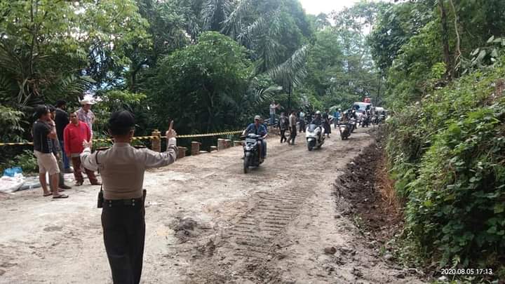 Agam – Setelah sempat runtuh karena curah hujan yang tinggi pada Minggu, 26 Juli 2020, Pemerintah Kabupaten Agam langsung melakukan pembangunan jembatan darurat pada kelok 10 jalur kelok 44 yang menghubungkan Kabupaten Agam dan Kota Bukittinggi.