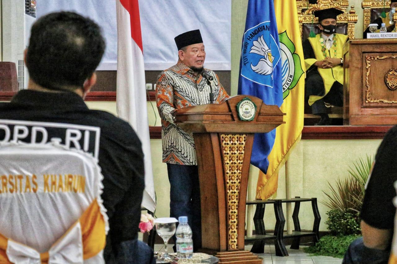 Ternate – Ketua Ketua DPD RI, AA LaNyalla Mahmud Mattalitti, hadir dalam sidang terbuka Universitas Khairun, Maluku Utara, Kamis 28 Januari 2021.