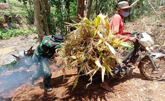 Melihat hal tersebut, anggota Satgas TMMD Ke-111 Kodim 1202/Skw Serda Alponsius langsung mendorong motor warga. Selanjutnya motor warga dapat melintas di jalan penghubung yang belum beraspal tersebut.