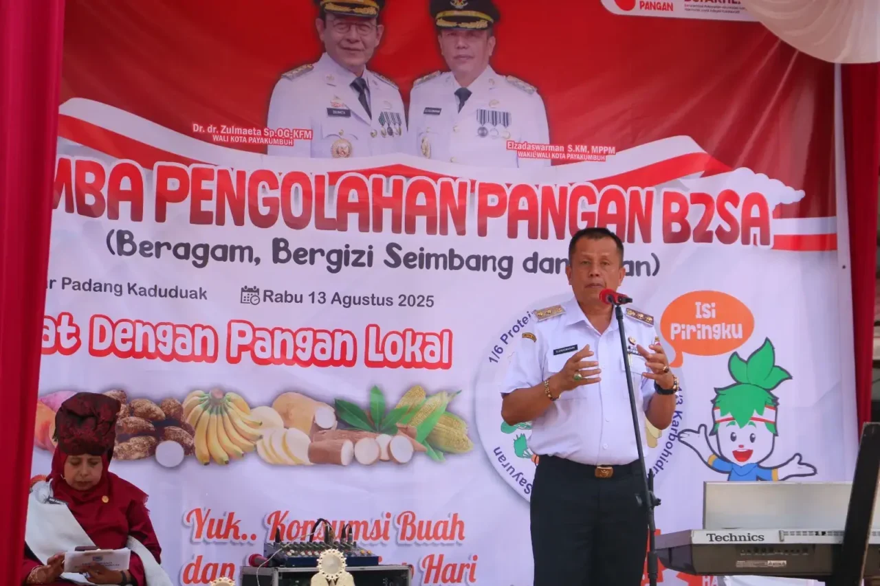 Payakumbuh — Pemerintah Kota Payakumbuh menggelar Lomba Pengelolaan Pangan Beragam, Bergizi, Seimbang, dan Aman (B2SA) serta Bazar Pasar Murah di Pasar Rakyat Padang Kaduduak, Rabu (13/8/2025).