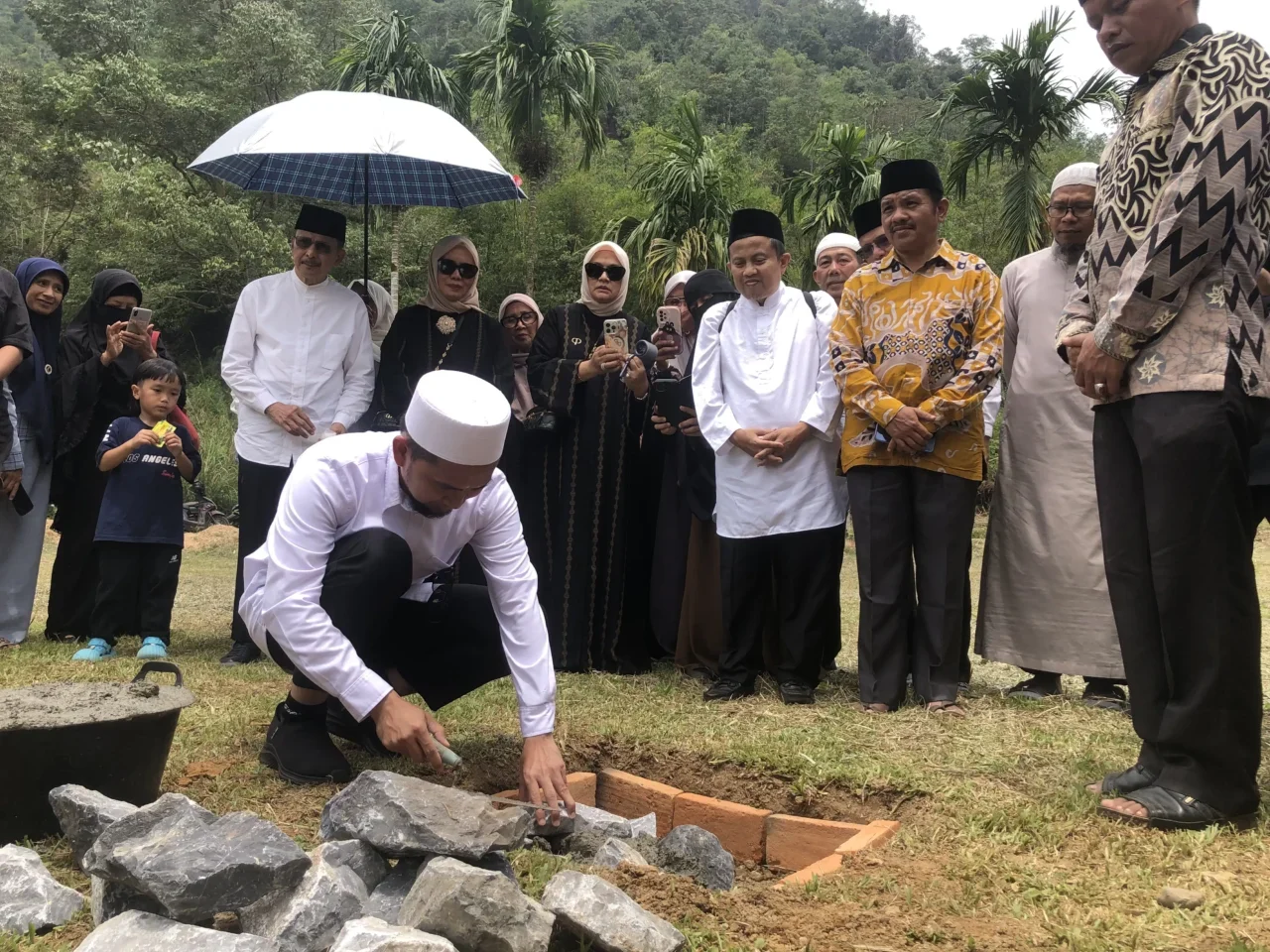 Lima Puluh Kota – Ustadz Adi Hidayat melakukan peletakan batu pertama pembangunan Pondok Pesantren Ma’had Islam Rafiah Akhyar (MIRA Institute) di Jorong Gantiang, Nagari Harau, Kecamatan Harau, Kabupaten Lima Puluh Kota, Minggu (24/08/2025).