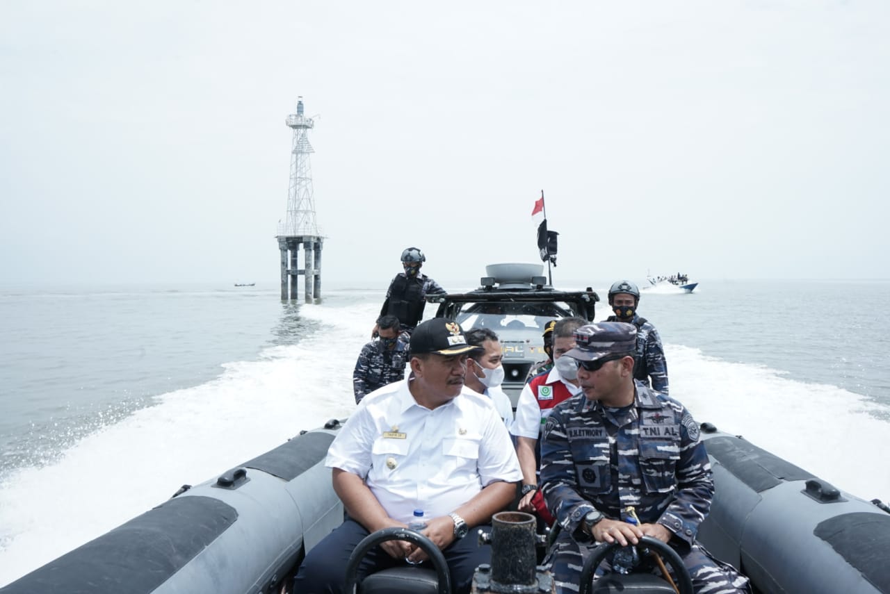 Asahan – Wakil Bupati Asahan Taufik Zainal Abidin, S.Sos, MSi bersama dengan Danlanal TB/AS, Dandim 0208/AS, Wakapolres Asahan, Bea Cukai Teluk Nibung, KSOP Teluk Nibung, OPD Terkait melakukan Peninjauan Potensi Maritim di Bagan Asahan, Rabu, 7 April 2021.