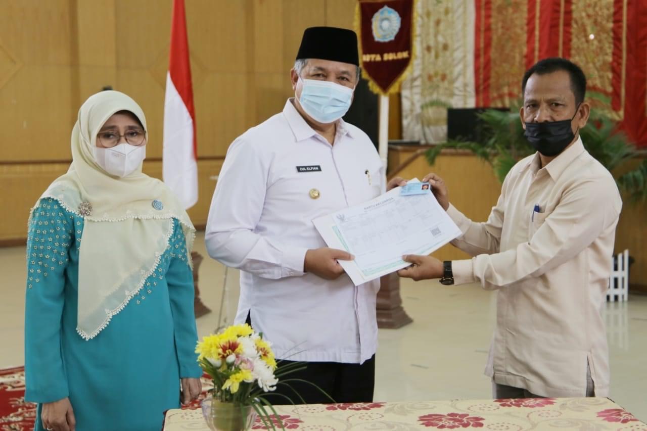 Wako yang didampingi istri Zulmiyetti Zul Elfian Umar saat menerima dokumen kependudukan miliknya yang telah disesuaikan berdasarkan penetapan Ketua Pengadilan Negeri Solok menyampaikan terima kasih dan berharap semoga dirinya mampu menjaga nama alm ayah yang secara resmi telah disematkan pada namanya.