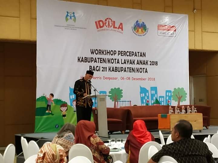 DENPASAR, KABARSUMBAR – Wali Kota Padang Mahyeldi dipercaya Kementerian Pemberdayaan Perempuan dan Perlindungan Anak RI sebagai narasumber praktik baik KLA (sharing best practice) pada Rapat Koordinasi Percepatan Kabupaten/Kota Layak Anak Bagi 211 Kabupaten/Kota se-Indonesia di Harris Hotel & Convention Hotel Denpasar Bali, Kamis (6/12/2018). Kepercayaan tersebut diberikan atas prestasi Kota Padang sebagai salah satu daerah yang memiliki praktik terbaik dalam menuju Kota Layak Anak (KLA).